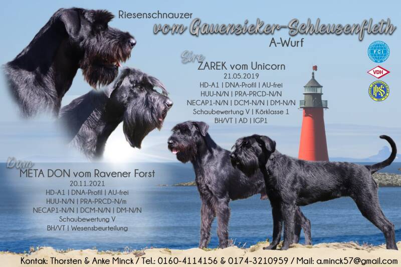 Beide Elterntiere haben die vom PSK empfohlenen Genuntersuchungen (Laboklin) für Riesenschnauzer.